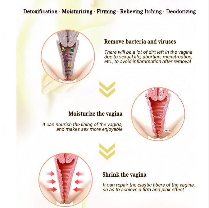 Women's special body structure makes their vagina and uterus prone to accumulate toxins and body waste. Frequent sexual intercourse, childbirth, and poor lifestyle habits often exacerbate such conditions and it’s often accompanied by dry, loose mucous membranes, frequent burning sensations, itching, dull color, recurrent inflammation, and an unpleasant odor. It can also happen to women who lack estrogen in their bodies due to hysterectomy or menopause.